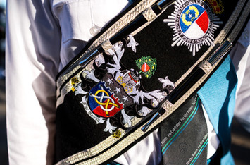 Did you know...Wake and District has a Coat of Arms? It was designed and registered by alumni band member Dale Challener Roe in 2012 and can be see on our Drum Major's (Jason Lane) baldric.