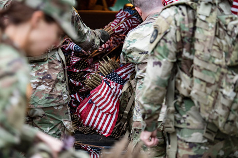 Before the sun had a chance to crack the horizon on May 25, 2023, the soldiers had spread out in various sections of the cemetery, their rucksacks bulging with bundled flags. As they worked their way down the rows of headstones, they placed a booted toe against each and pushed a small flag into the earth at their heel. Then it was on to the next headstone.